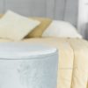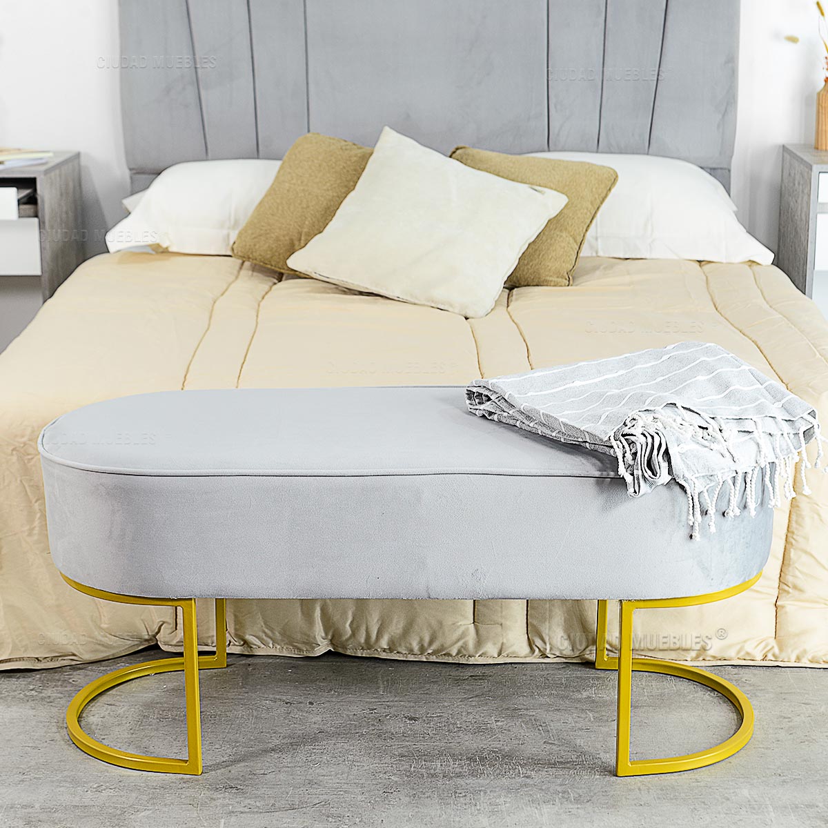 Banco otomano terciopelo gris. Mueble multipropósito de calidad premium, suave al tacto y cómodo en el uso. Puede ser utilizado como pie de cama, banco de apoyo para cambio de zapatos o como elemento decorativo en una sala o recibidor.