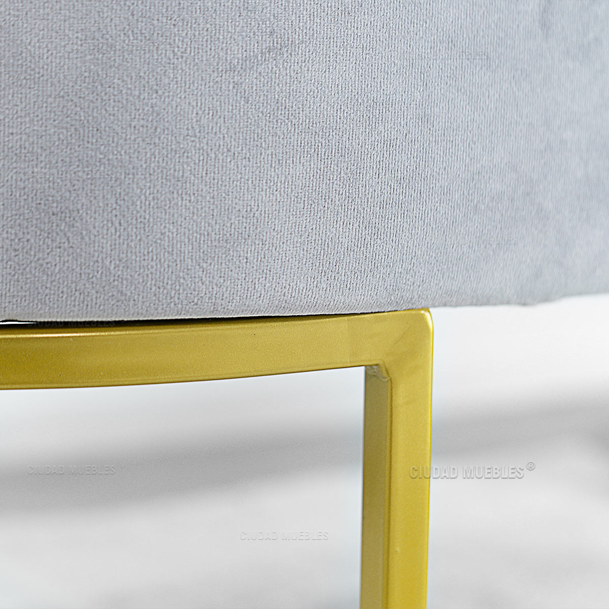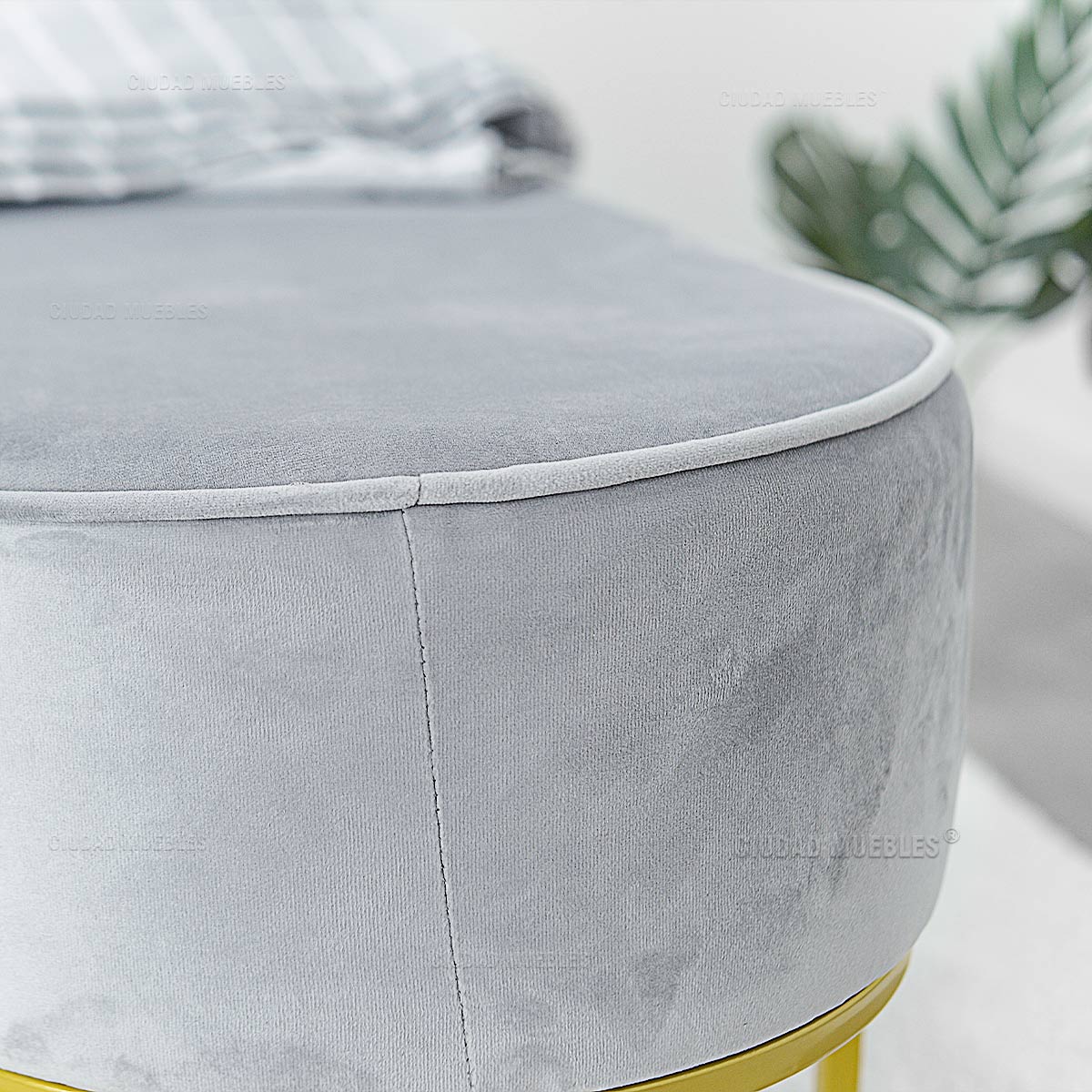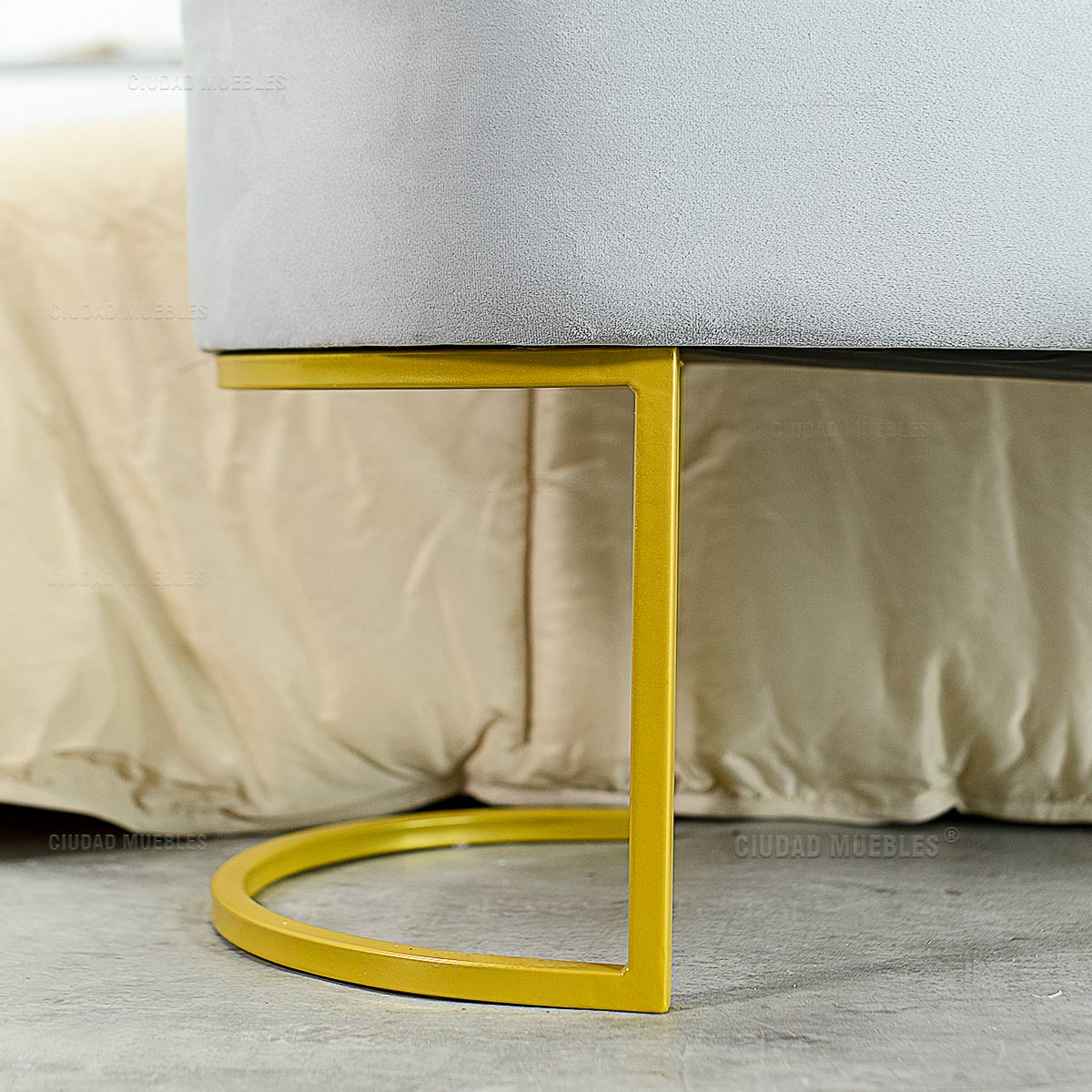 _ _ _ _ _ CARACTERÍSTICAS BANCO OTOMANO TERCIOPELO GRIS BASE DORADA_ _ _ _ _ _ _