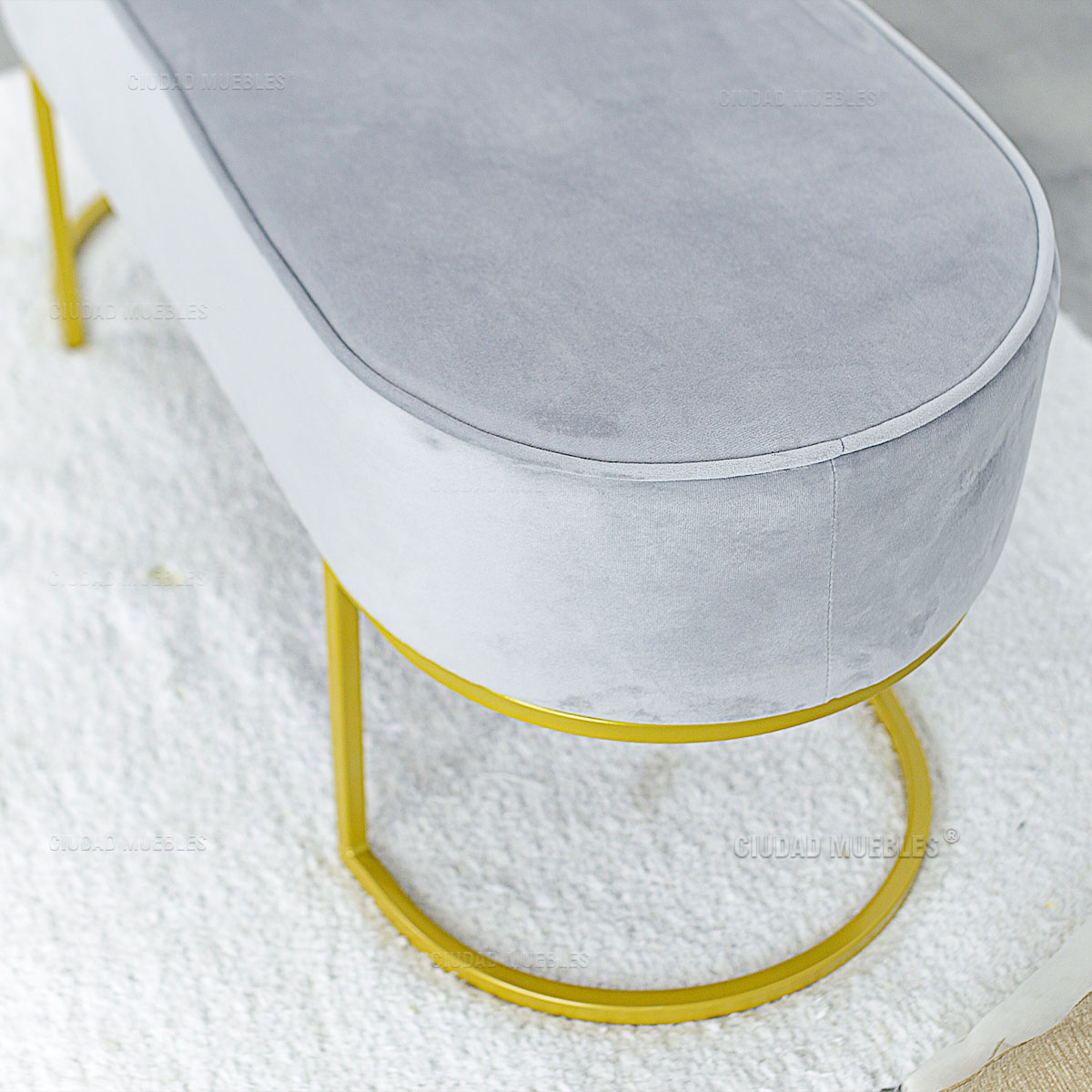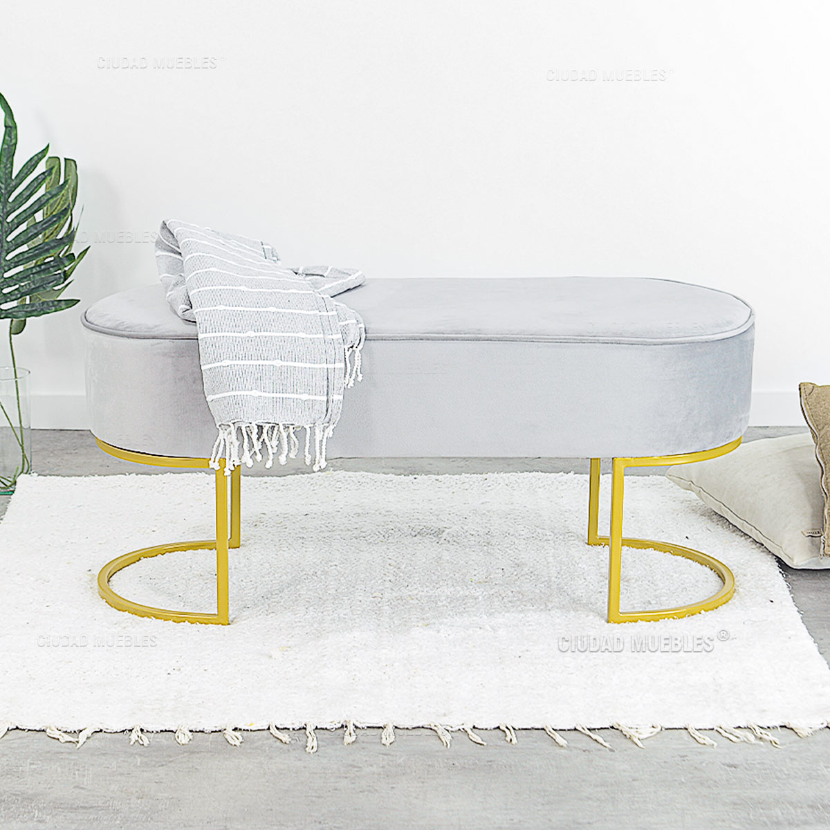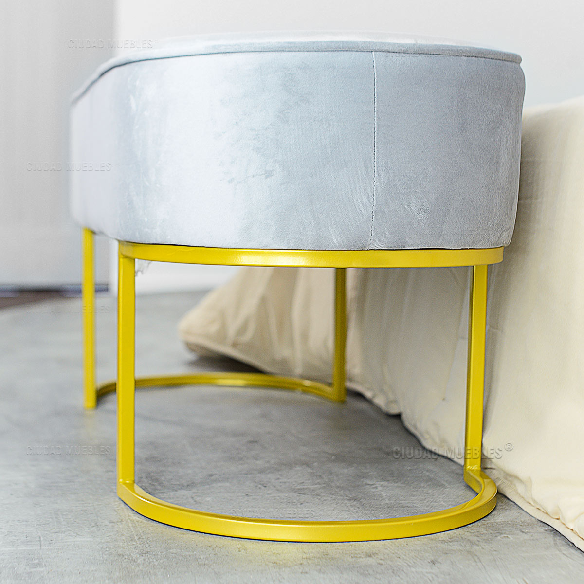_ _ _ _ _ CARACTERÍSTICAS BANCO OTOMANO TERCIOPELO GRIS BASE DORADA_ _ _ _ _ _ _