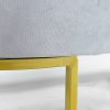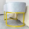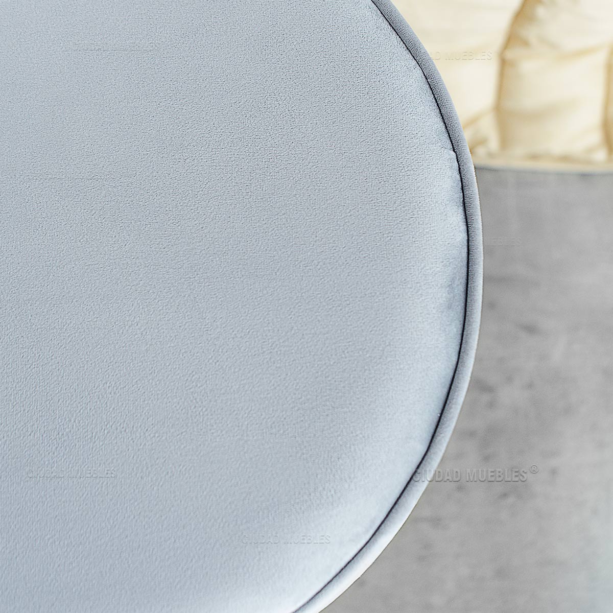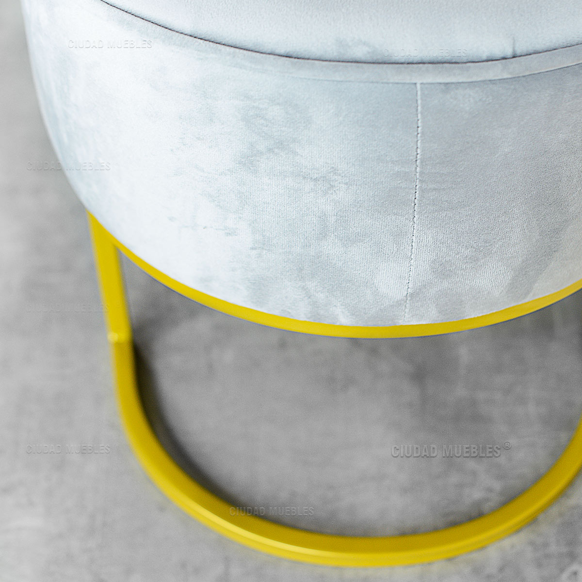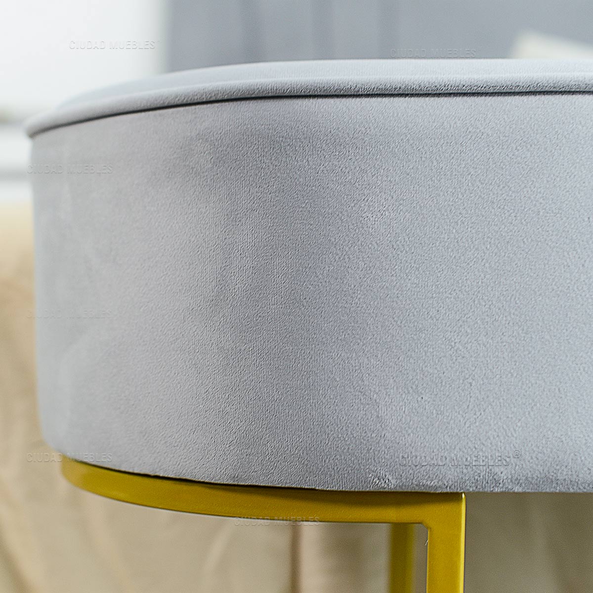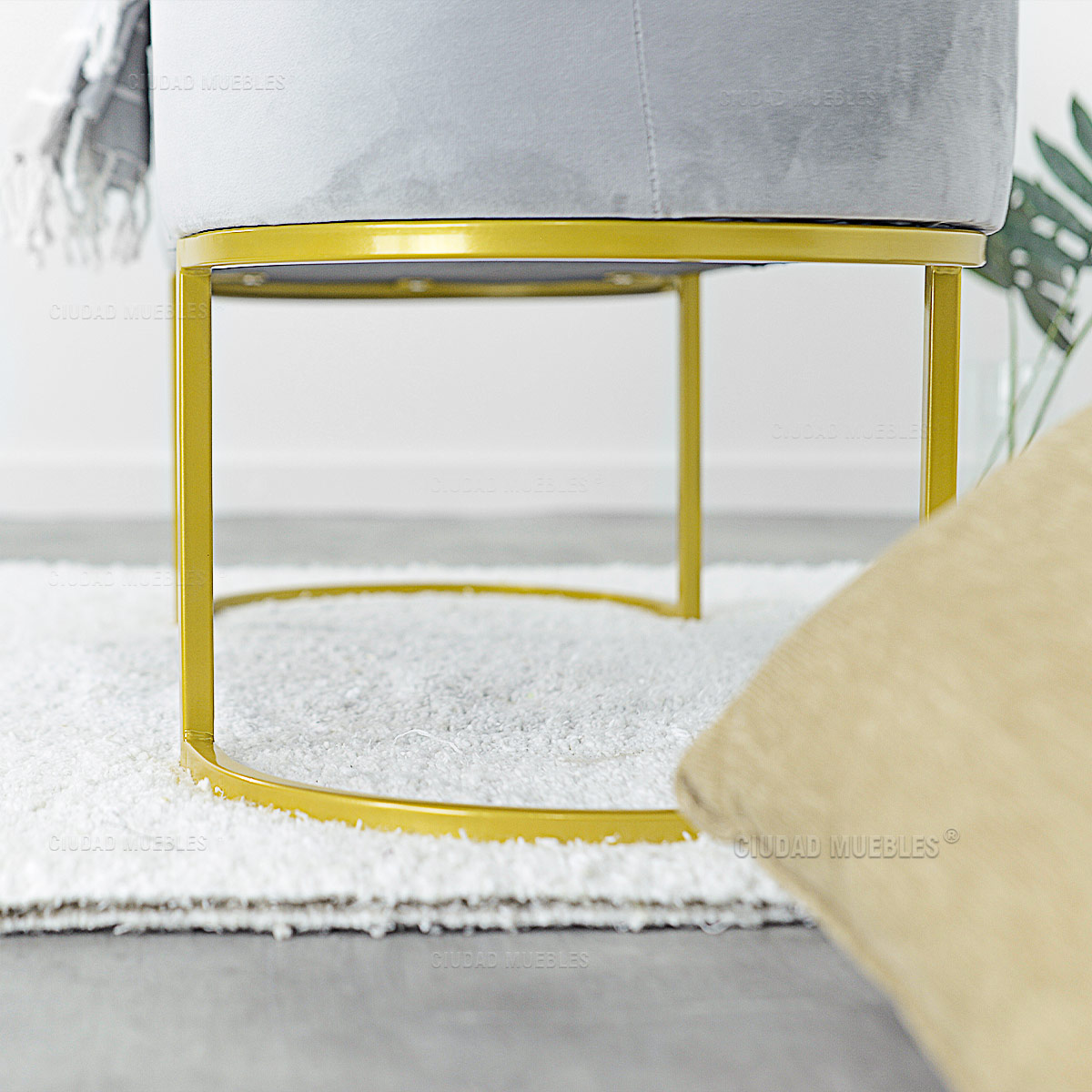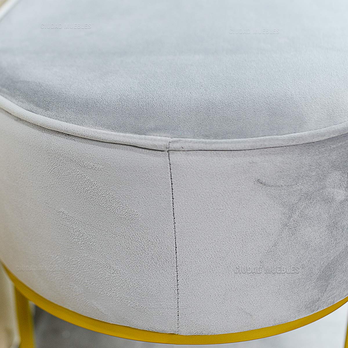 Está fabricado en terciopelo súper suave de primera calidad y está pensado para que tenga una larga vida útil. Su estructura de metal dorado otorga resistencia y contrasta favorablemente con el color gris del asiento.