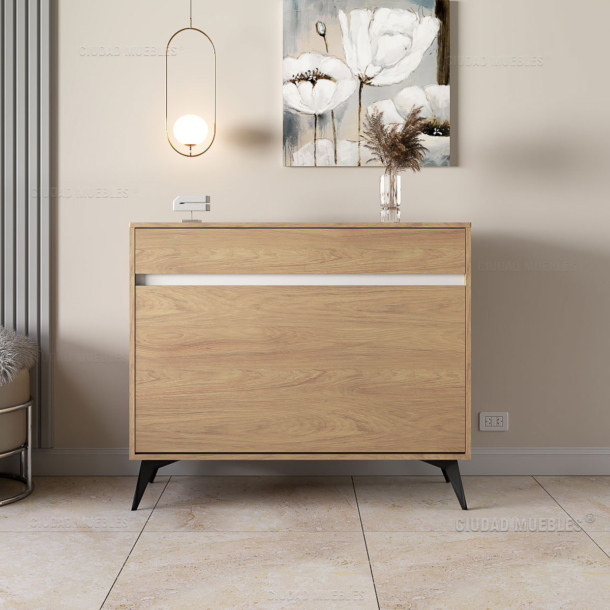 – Podés combinar este recibidor con nuestros espejos, repisas y cualquier otro de nuestros muebles funcionales.