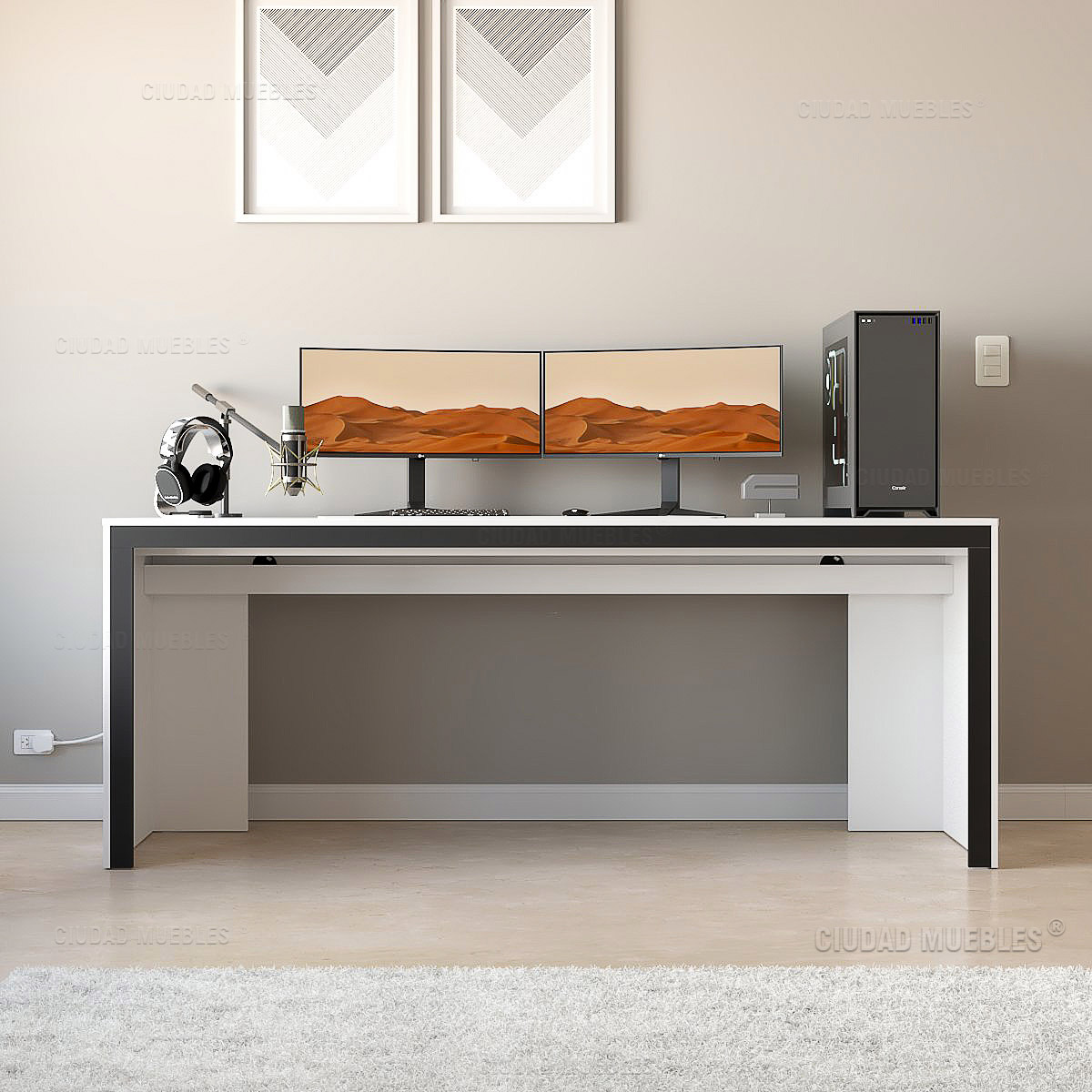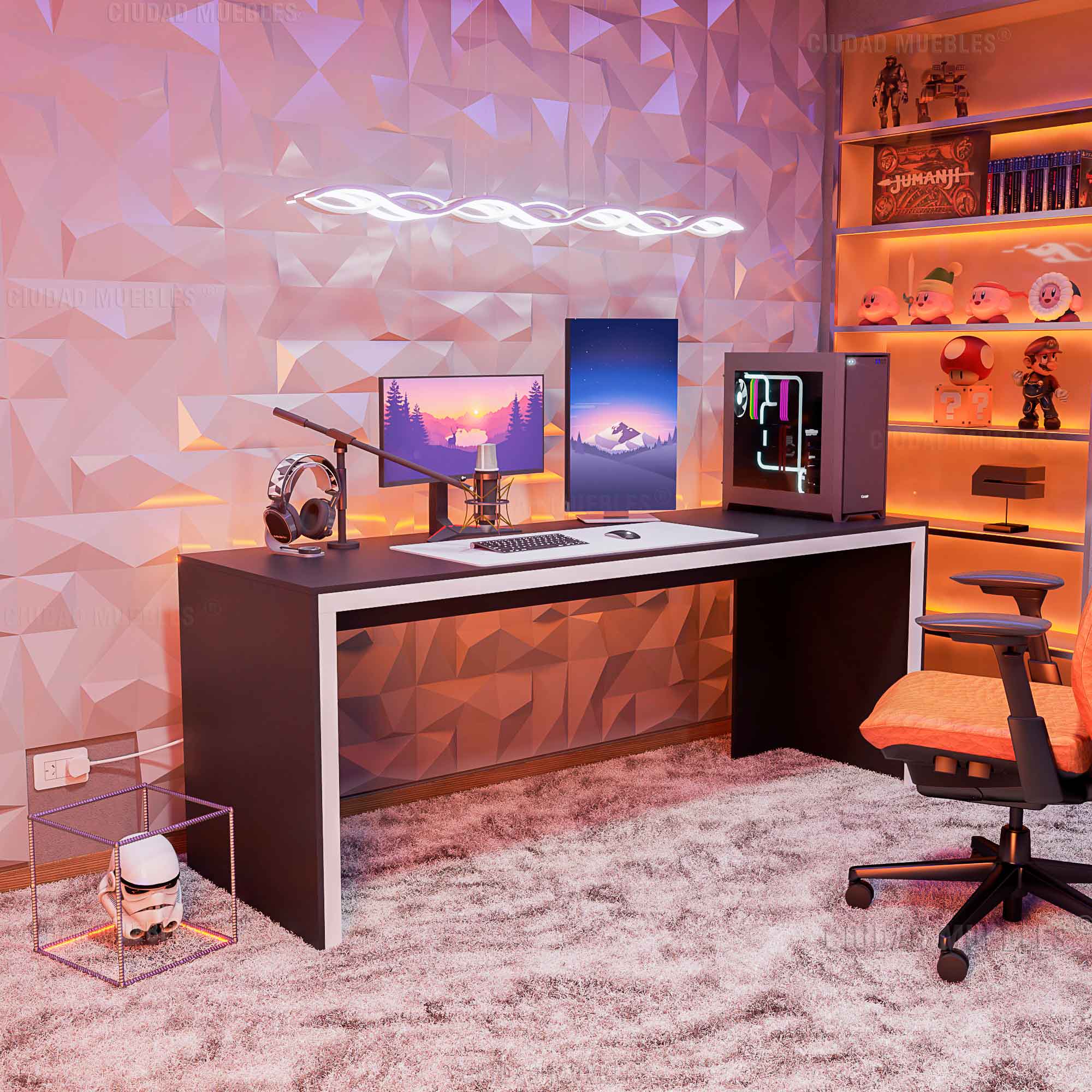 Escritorio gamer pc 200cm. Diseño pensado a detalle para que desbloquees el siguiente nivel de confort en tu lugar reservado para jugar hasta que en la pantalla de tu adversario aparezca game over.