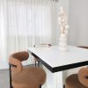 – ESTÉTICA CONTEMPORÁNEA: Irradia funcionalidad y personalidad con el atractivo atemporal de la estructura de líneas simples en contraste con el respaldar curvo y asiento redondo de tapizado en tela «boucle» de alta calidad.