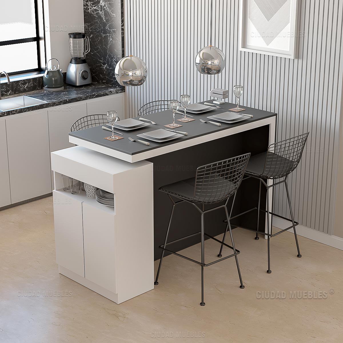 MESA BARRA DESAYUNADOR PARA 4 PERSONAS CON CAJÓN Y PUERTAS.