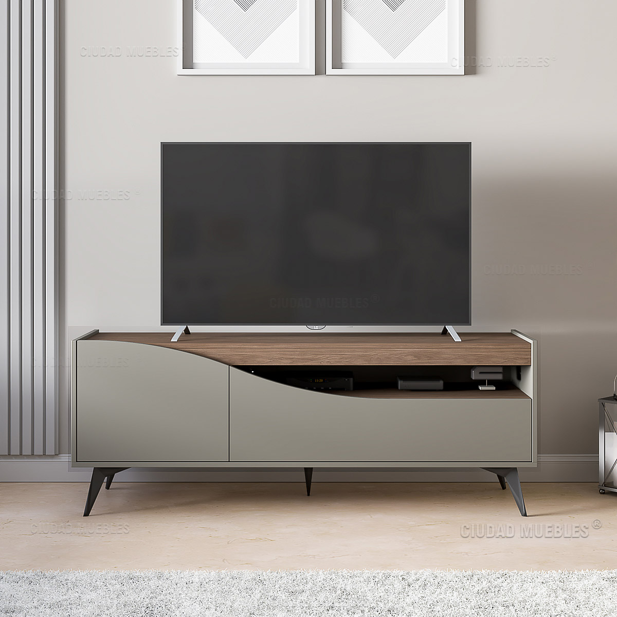 Mesa para Smart TV curva 140x53x35cm de 140 cm de longitud con variados espacios para almacenaje.