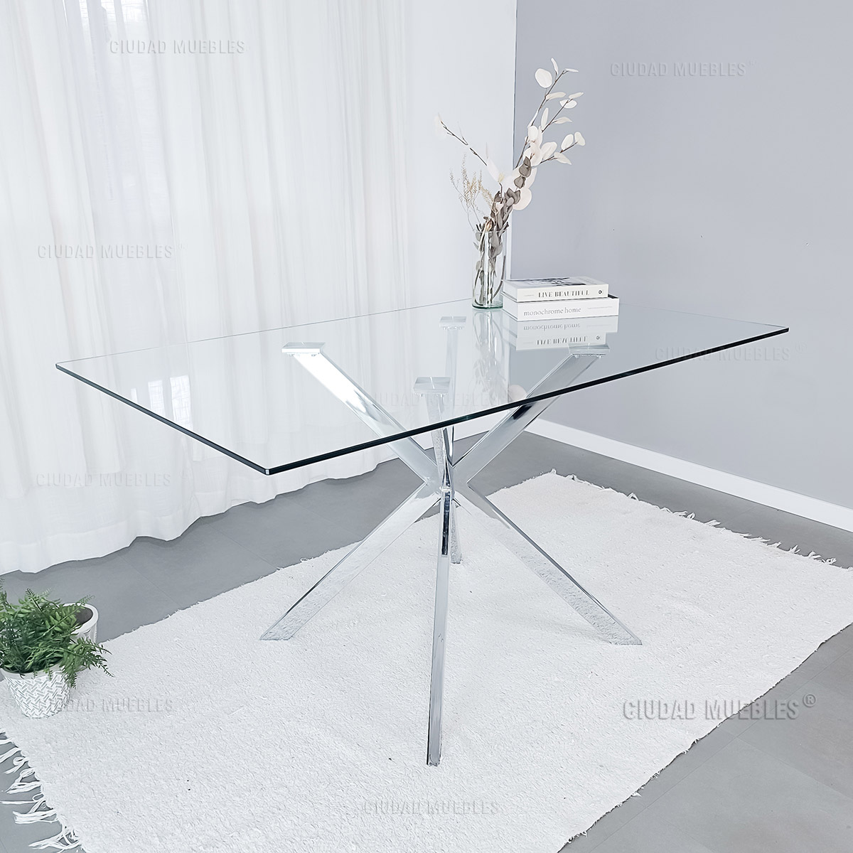 – DISEÑO INNOVADOR: La verdadera joya de esta mesa reside en su base de metal cromado con acabado espejo. Su estructura en forma de estrella proporciona un soporte sólido y estable y se convierte en una especie de escultura de gran impacto visual.